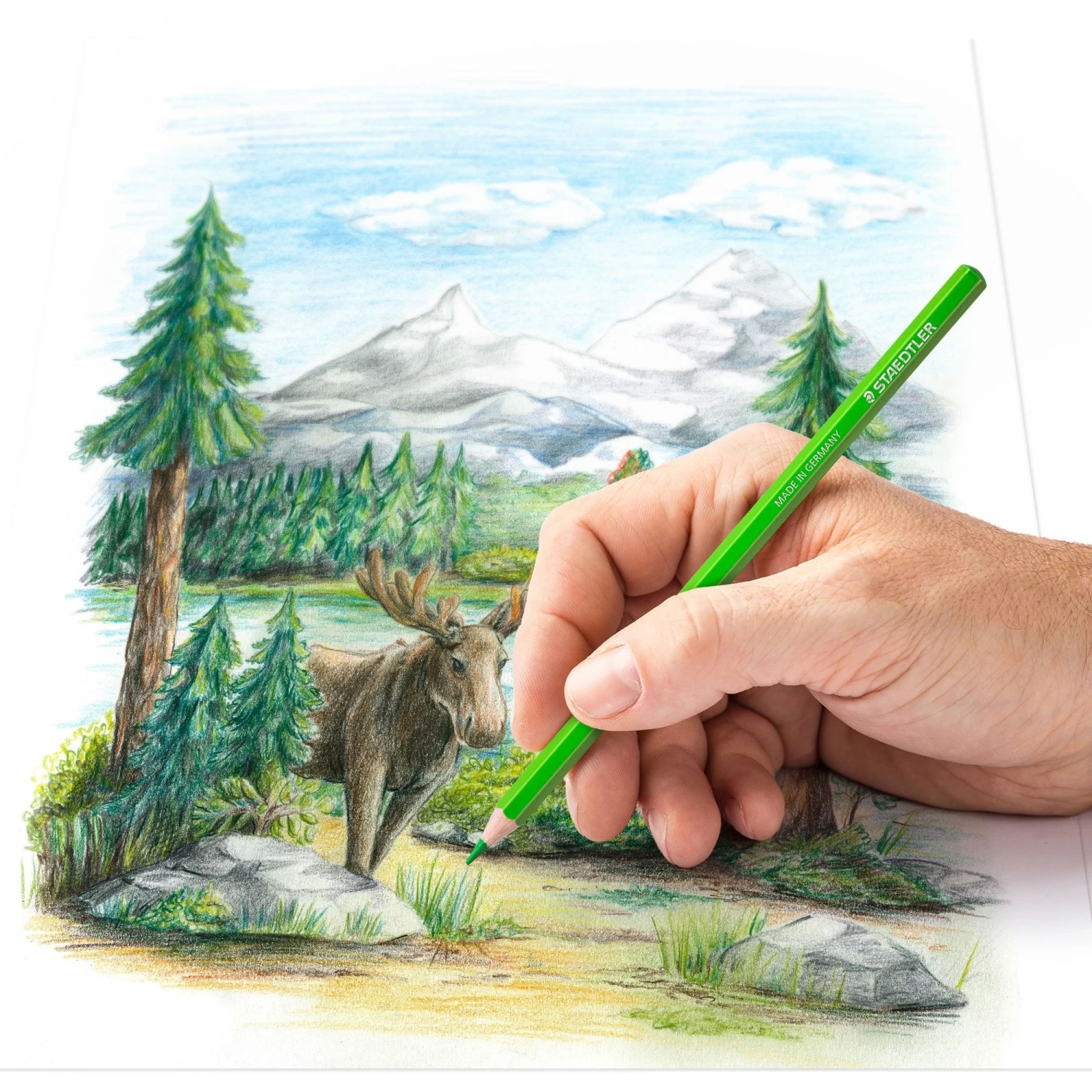 Classic hexagonal shaped colour pencil with a tempered head with the colour varnished in the lead for easy recognition and colour differentiation. The soft lead is ideal for a wide range of dry drawing techniques in bright colours and the intense colour pigments are easy for blending. Ideal colouring pencil set for beginners, childrens art projects and all colouring book enthusiasts.