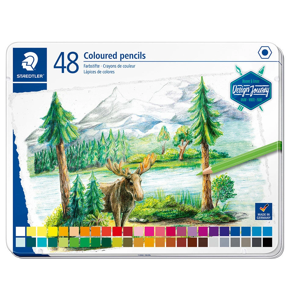48 Staedtler Design Journey Colour Pencils in a metal tin.