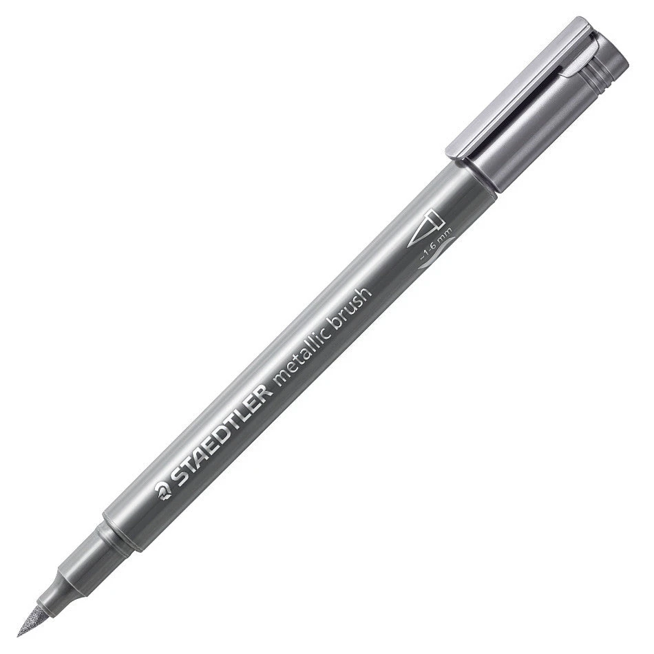 Staedtler Metallic marker pen with fibre-tip perfect for opaque writing and decorating on both light and dark paper and card. Ideal for scrapbooking and greeting cards. Doesn’t require pumping or shaking. Can be easily wiped off smooth surfaces like glass and mirrors using a damp cloth. 1-6mm line width.