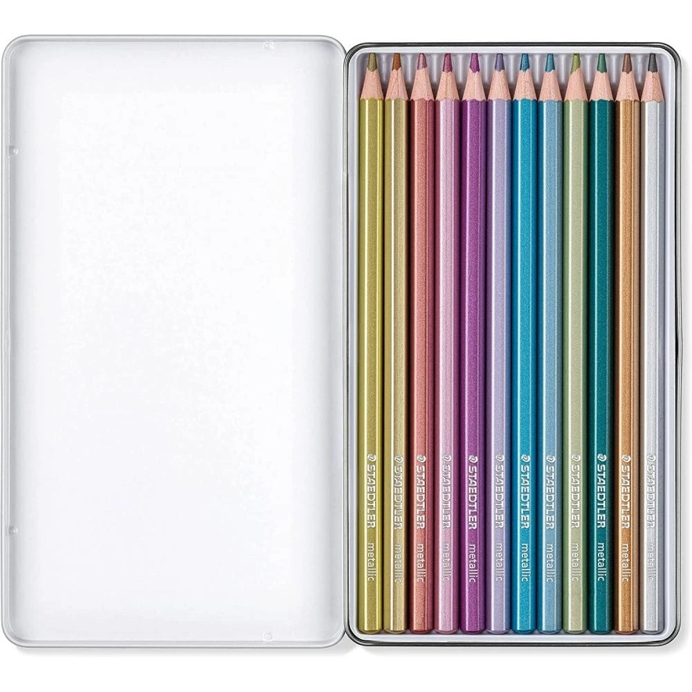 Coloured pencil for shimmering metallic effects. Soft lead giving high coverage. Adds shine, and highlights particularly well on dark paper. For fine drawing lines and shading larger areas in sparkling colour.