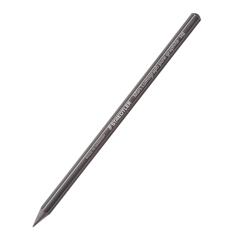 Staedtler Mars Lumograph Premium Quality Full Graphite Pencils in Metal Case. Break-resistant bonded lead. Special lead formulation for results with metallic luster in a wide variety of grey tones. Lines reproduce well. No wood-casing, 6 degrees.
