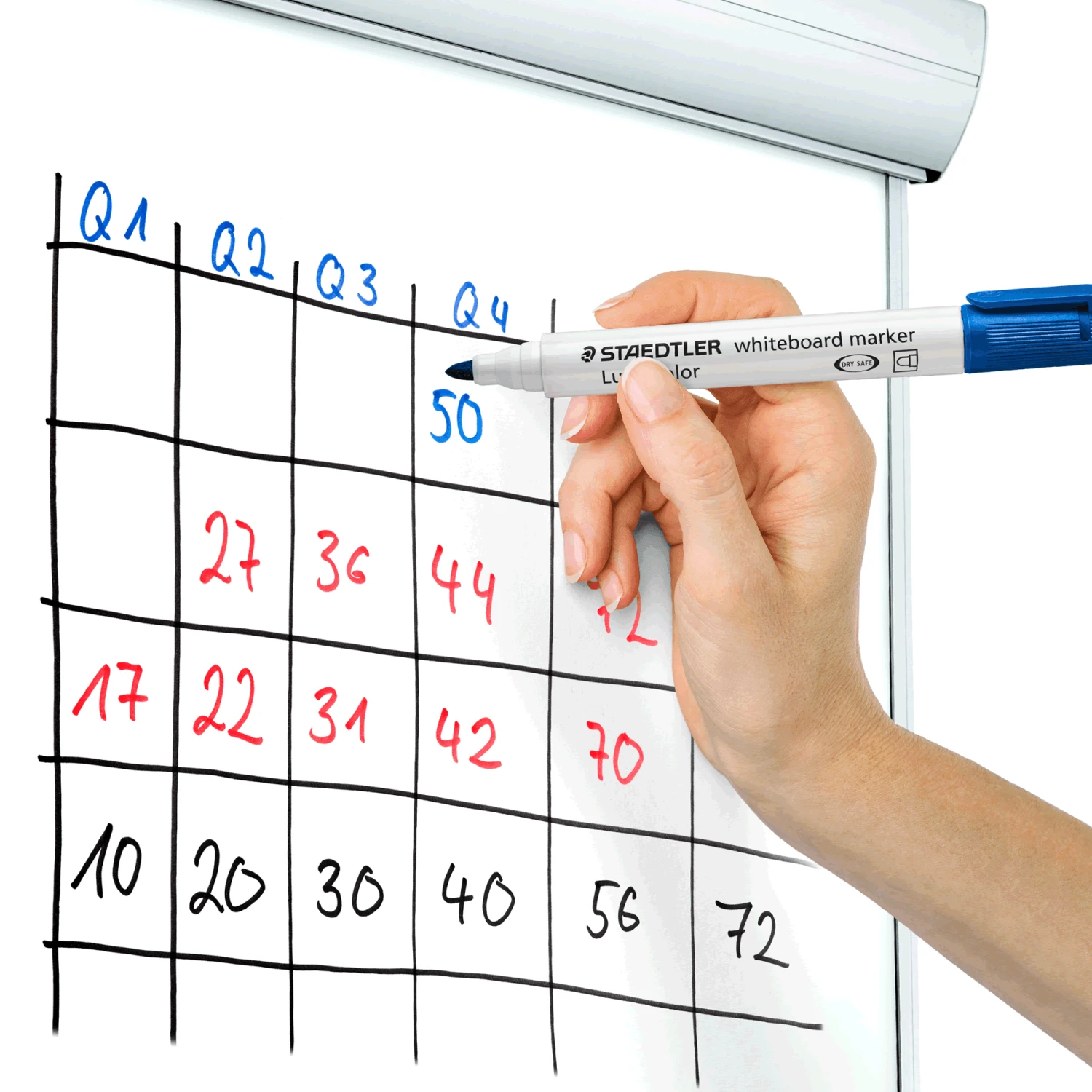 Lumocolour whiteboard markers have a bullet tip drawing line of 2 mm, these pens are dry-safe which means they can be left uncapped without drying up they are fast drying and low odour xylene and toluene free ink. The ink can be from whiteboards and surfaces such as glass and porcelain without leaving a trace.
