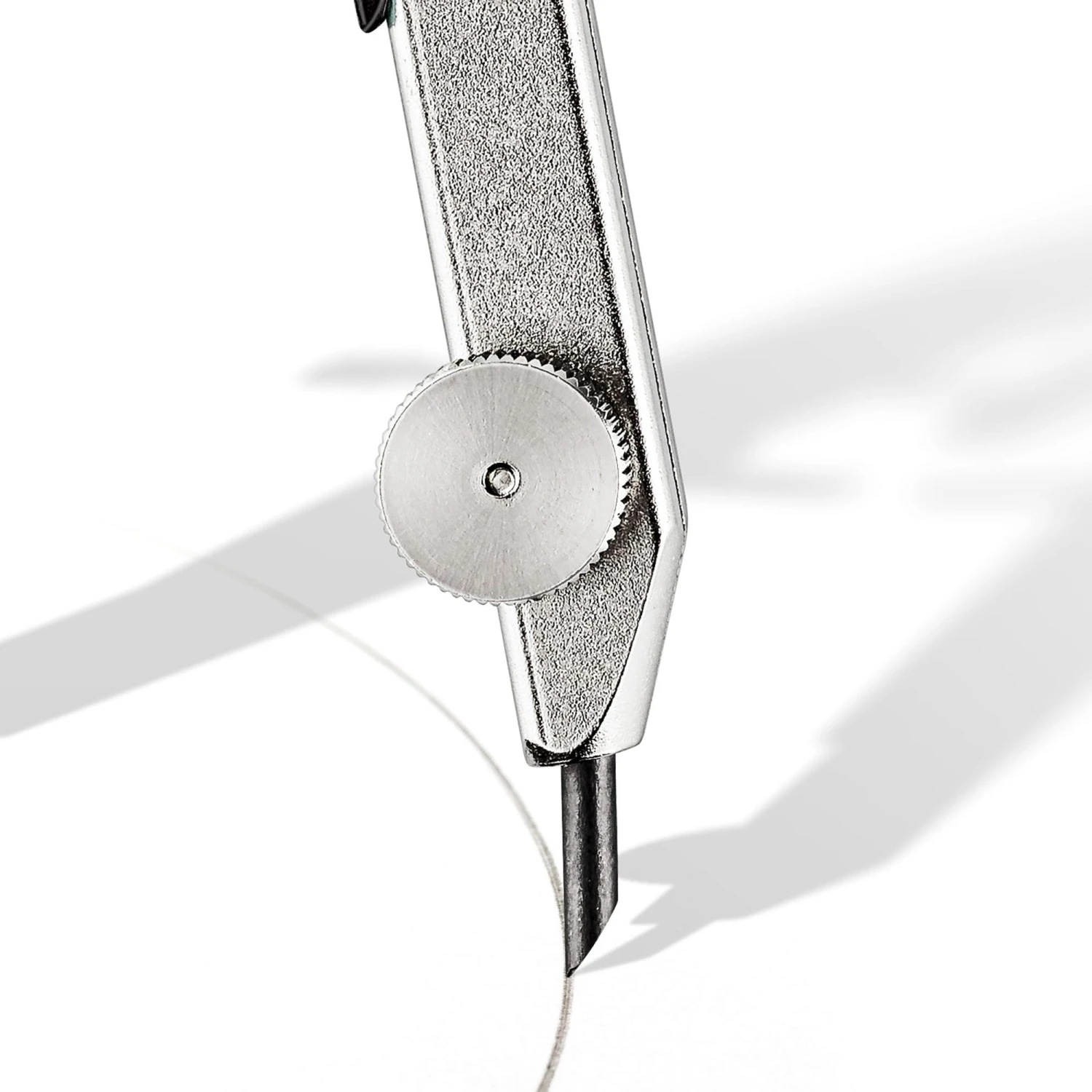 The Comfort Mars 556 Compass is a stable plastic-metal design which enables drawings that need a precise circle, with a spindle guide, round spring head and centre drive spindle, interchangeable lead insert and the maximum diameter of the drawing circle approx 225 mm, this is the perfect tool for all artist’s and hobbyist.