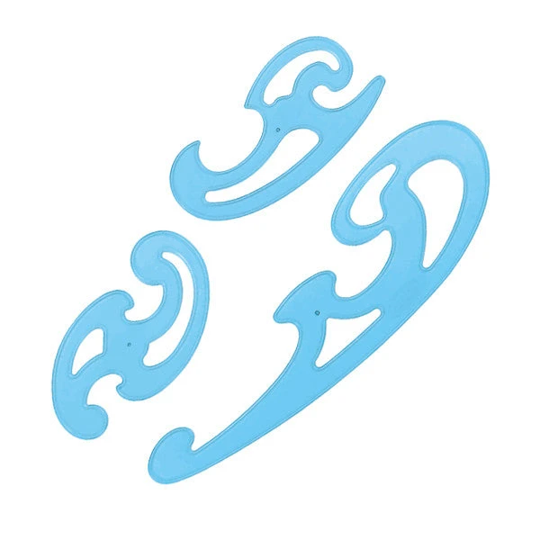 Staedtler 571 40 WP French Curves Set. 3 shapes with inking edges. Transparent blue plastic. Suitable for use with all drawing pens and pencils.