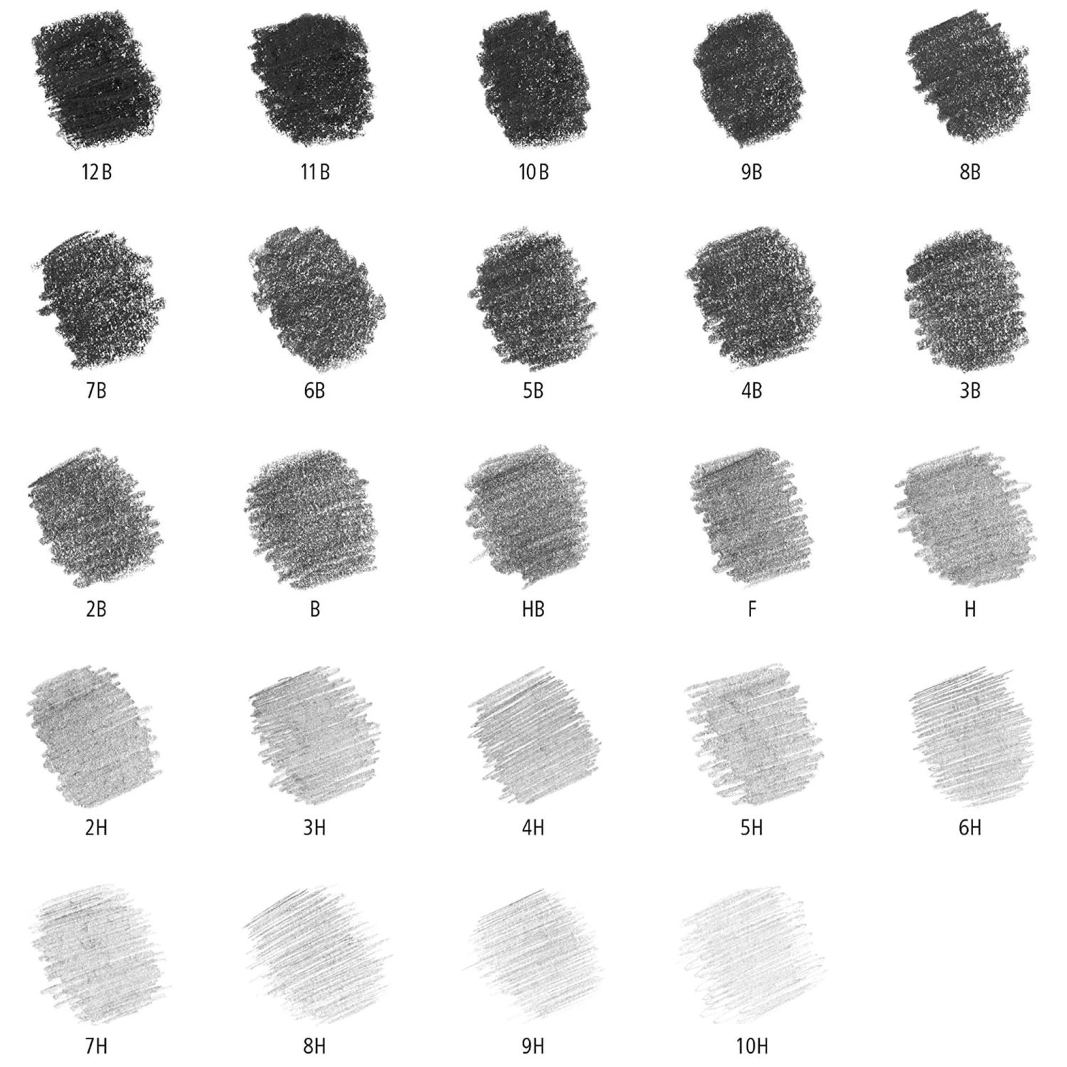 This tin comprises of 20 premium quality drawing pencils giving metallic lustre results in a wide variety of grey tones and 4 premium quality artists pencils with a high proportion of carbon for jet black matt finish.