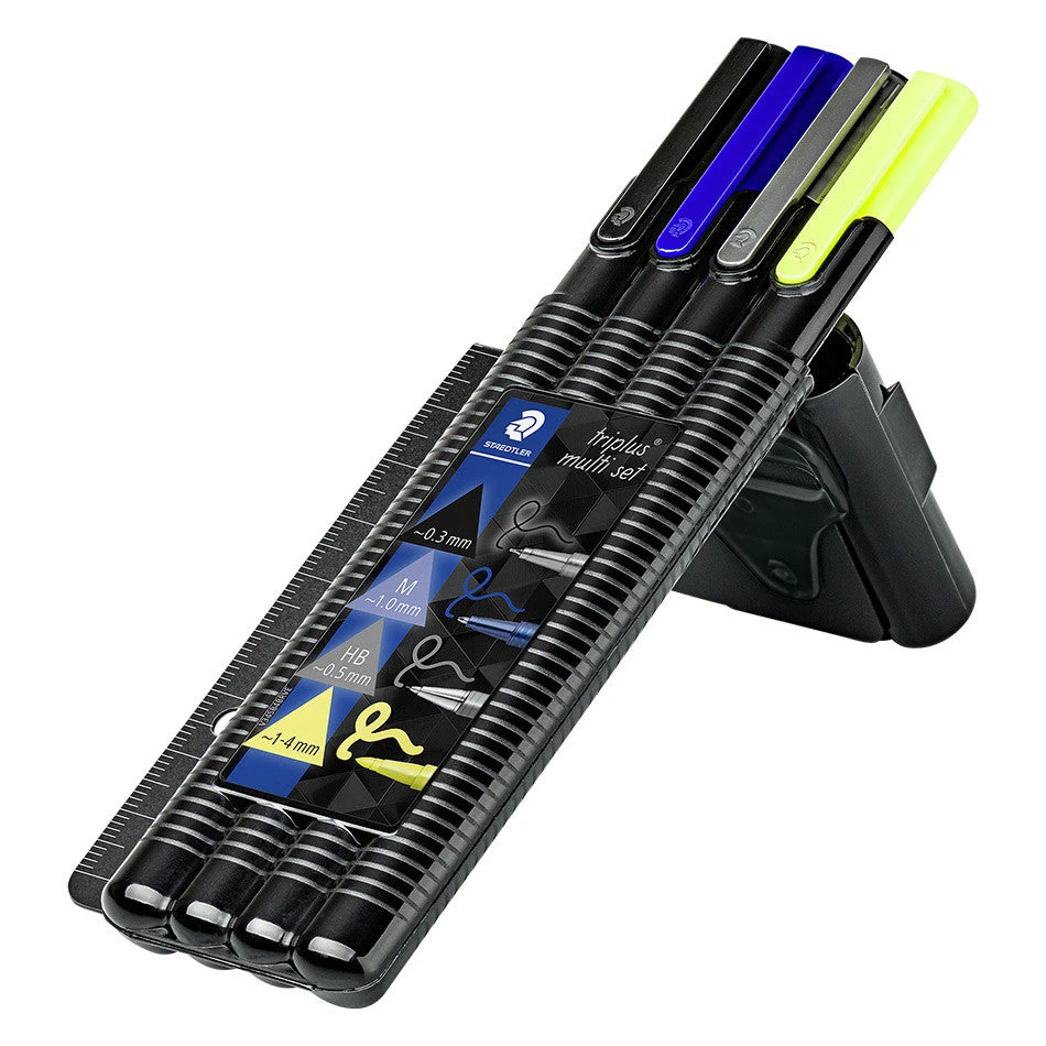 Assorted set of Staedtler triplus pens, perfect for people on the go and presented in a handy stand-up box.